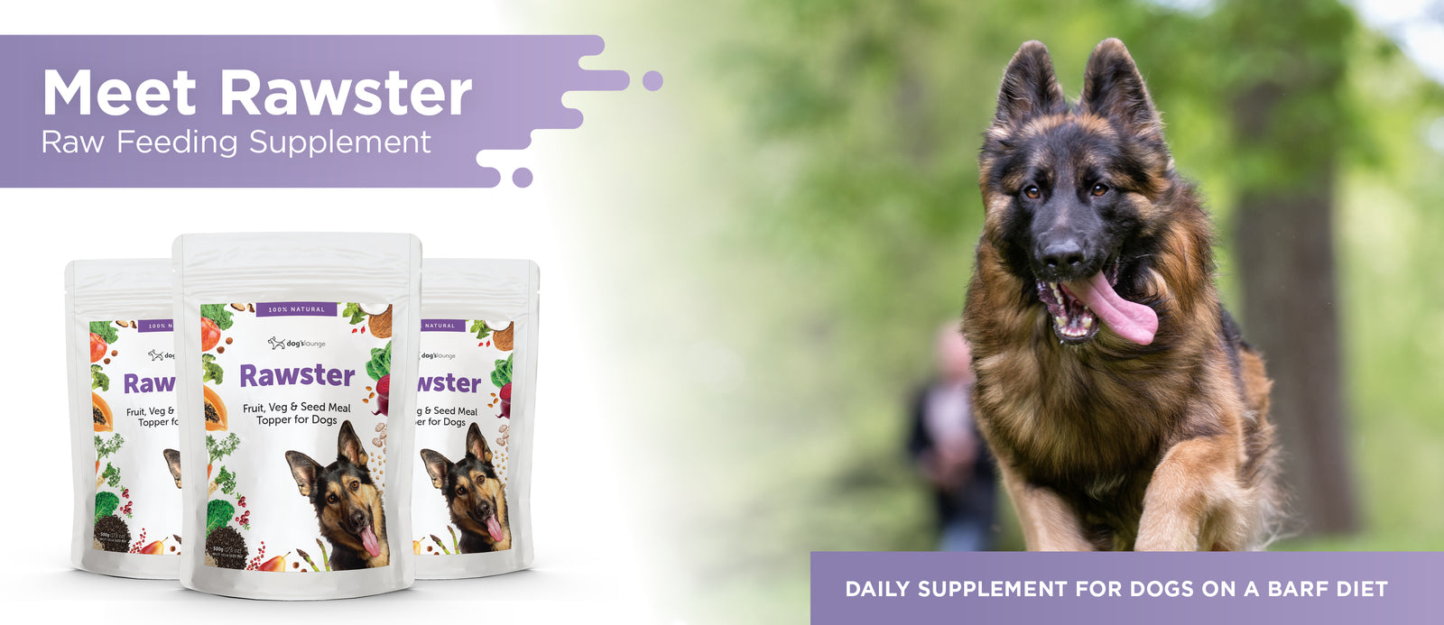 Rawster is a 100% natural and balanced supplement formulated for dogs on raw food diets. It is a comprehensive source of essential minerals, vitamins, and nutrients coming from 60+ different seeds, nuts, fruits, berries, pulses, herbs and vegetables.