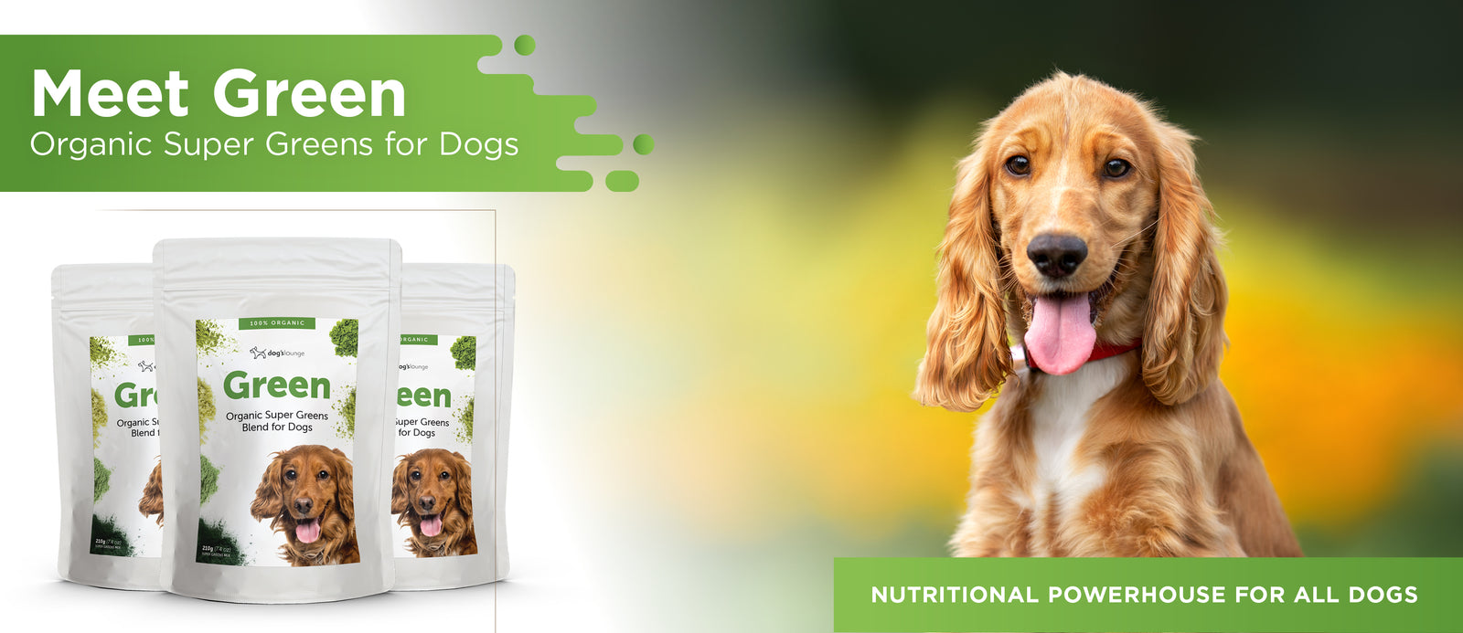 GREEN powder meets your dog’s nutritional requirements and will help with joint and muscle maintenance, digestion, flea control, amongst many other areas. It is a great source of nutrition as it contains all the essential vitamins, amino acids, and minerals needed to support your pup’s health.